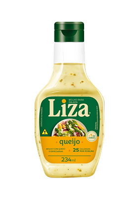 O Molho para Salada Liza® Queijos é feito com Queijos e Especiarias e possui 25 calorias por porção.