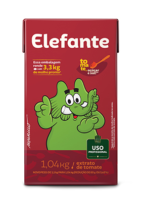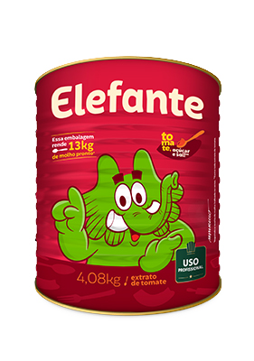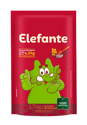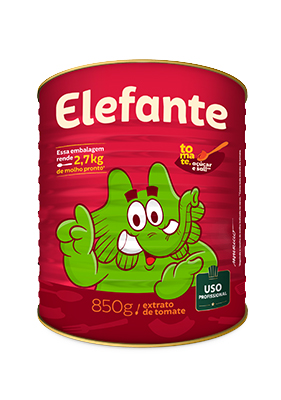 Sinônimo de qualidade, rendimento o extrato de tomate Elefante pode ser utilizado em diversas aplicações. Elefante é feito apenas com tomates selecionados, sal, açúcar e não contém conservantes. Elefante tem mais tomate a cada porção!